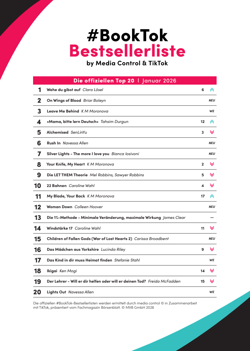 OFFIZIELLEN #BOOKTOK BESTSELLERLISTEN JANUAR 2026