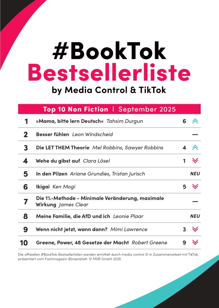 TIKTOK X MEDIA CONTROL: HIER DIE OFFIZIELLEN #BOOKTOK BESTSELLERLISTEN FÜR DEN september 2025