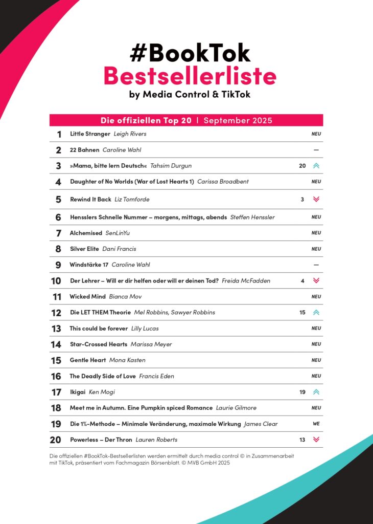 OFFIZIELLEN #BOOKTOK BESTSELLERLISTEN SEPTEMBER 2025